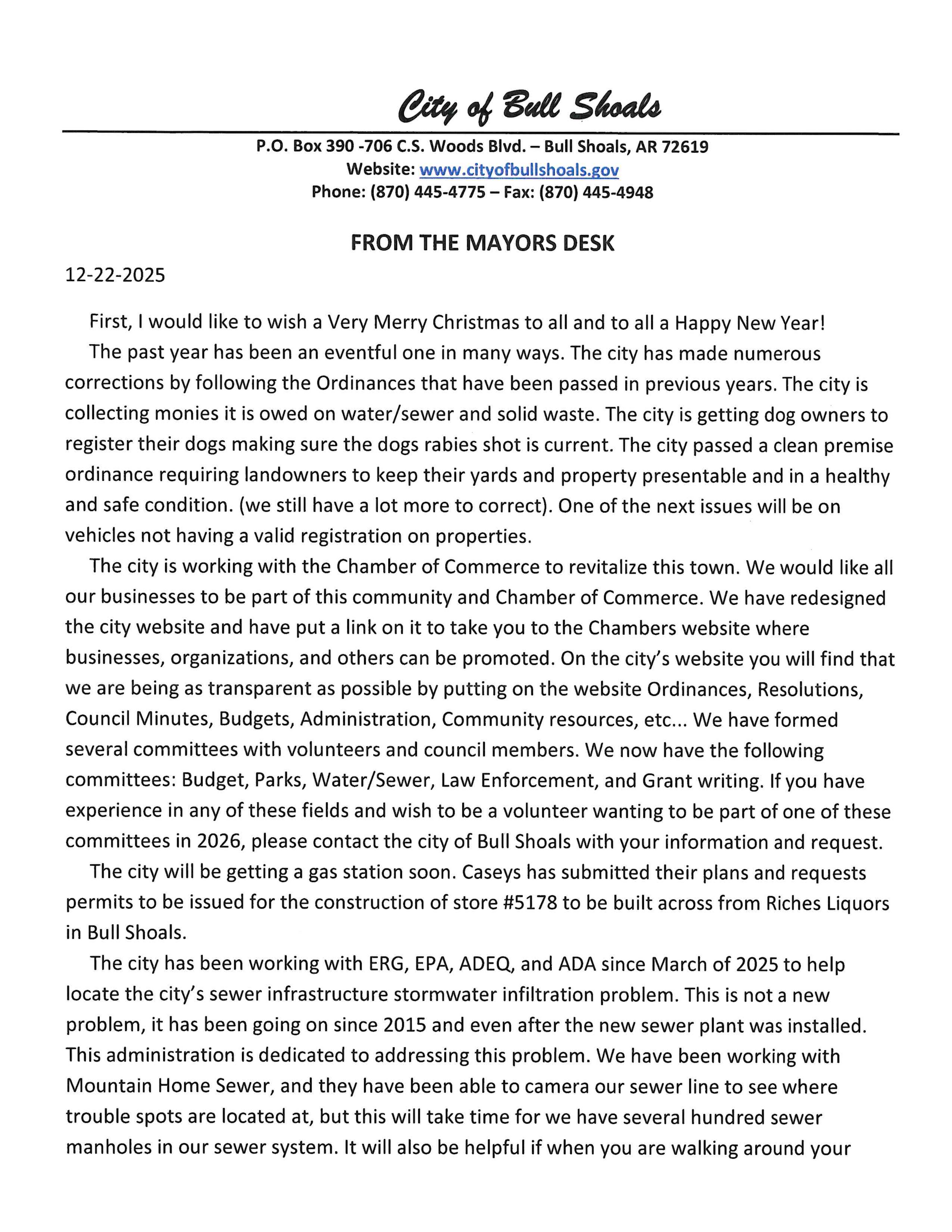 From the Mayor's Desk